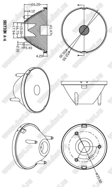 ILENS36-S50-M03-H-87M2 линза для светодиода; D52,5*27,6мм; 3°; PMMA   ILENS36-S50-M03-H-87M2