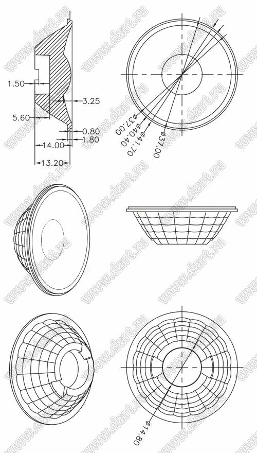 линза для светодиода; D41,7*14,0мм; 60°; PMMA