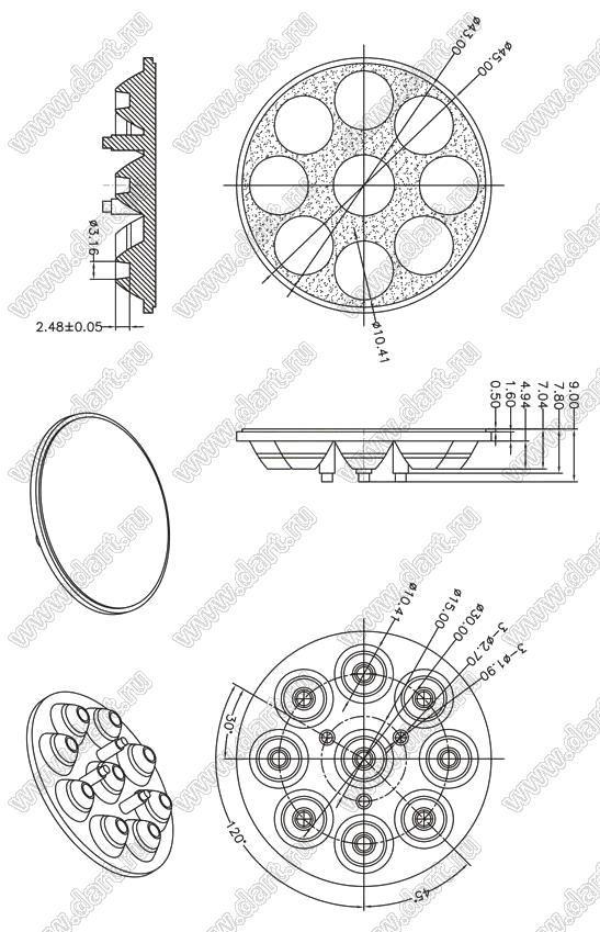 Каталог > Оптоэлектроника и индикация > Линзы и рефлекторы для светодиодов > Прочее > ILENS62-S45-25-9H1-NH