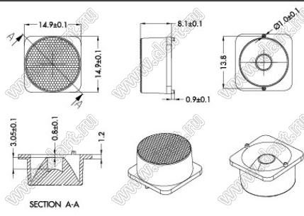 линза для светодиода; 14,9x14,9x8,0мм; 20°; PC