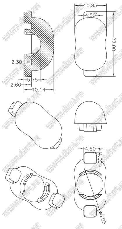 линза для светодиода; 22,0*10,8*10,1мм; 60*145°, Asymmetric; PC