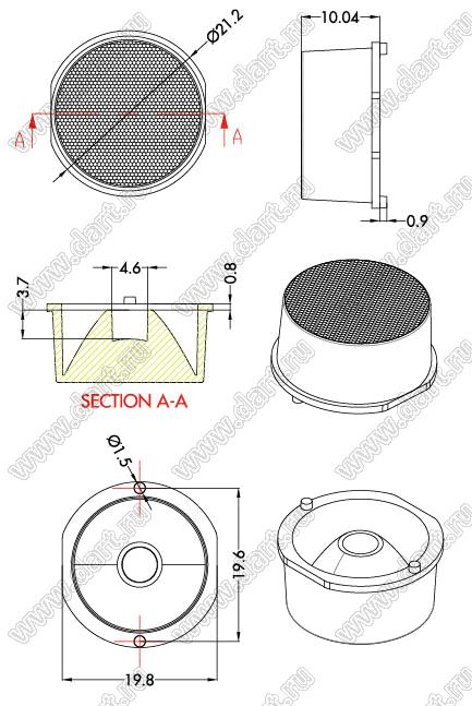 Каталог > Оптоэлектроника и индикация > Линзы и рефлекторы для светодиодов > Прочее > ILENS88-S20-B10-NH