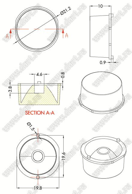 Каталог > Оптоэлектроника и индикация > Линзы и рефлекторы для светодиодов > Прочее > ILENS88-S20-M06-NH