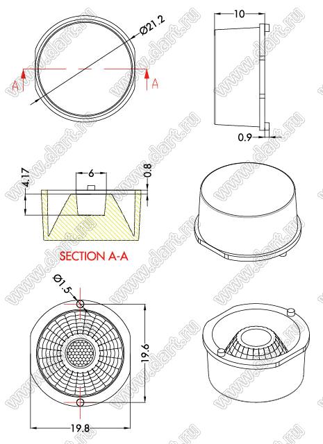 Каталог > Оптоэлектроника и индикация > Линзы и рефлекторы для светодиодов > Прочее > ILENS88-S20-M60-NH