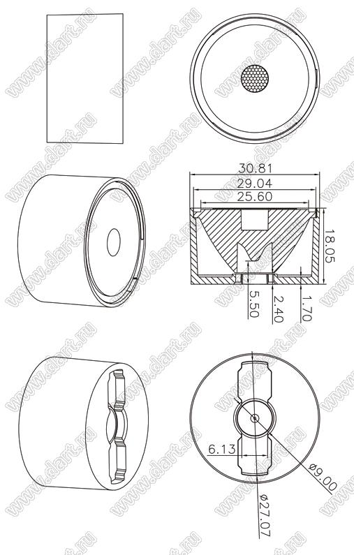 линза для светодиода; D30,81*18,05мм; 3°; PMMA