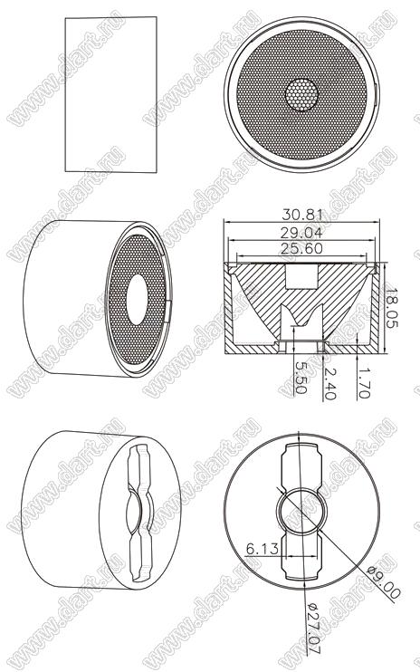 линза для светодиода; D30,81*18,05мм; 6°; PMMA