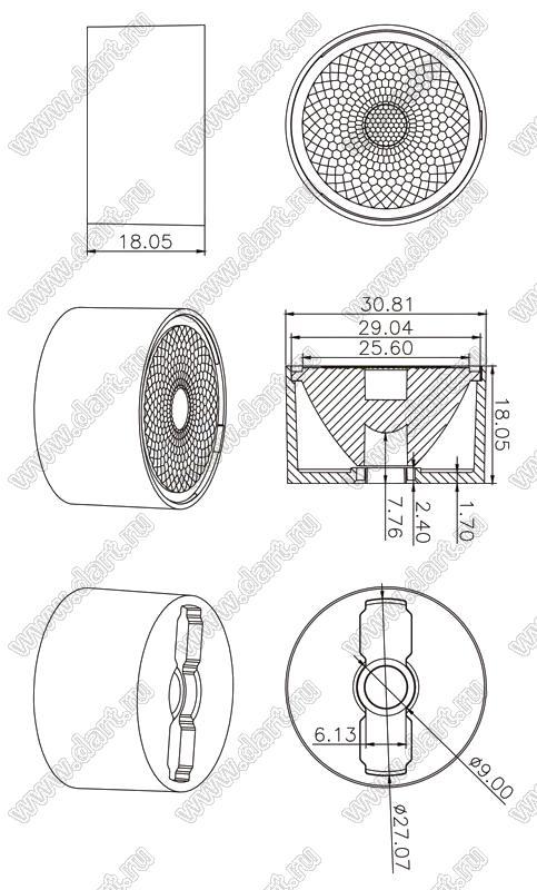 линза для светодиода; D30,81*18,05мм; 20°; PMMA