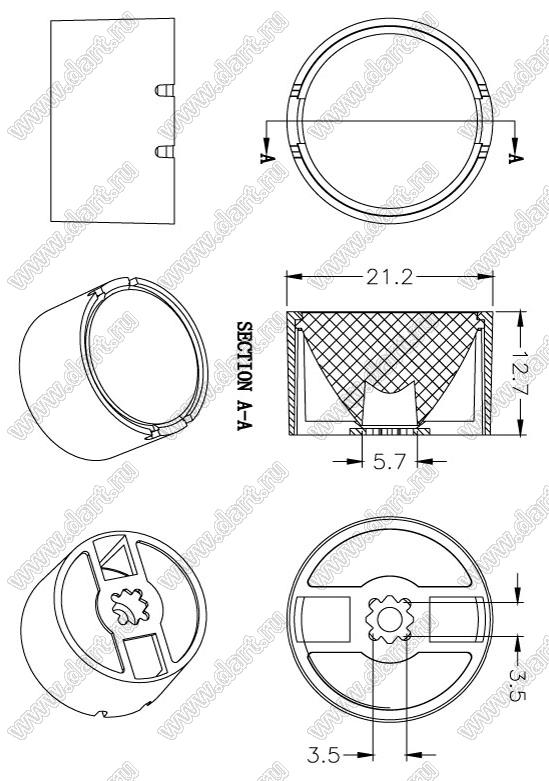 Каталог > Оптоэлектроника и индикация > Линзы и рефлекторы для светодиодов > Прочее > ILENS126-S20-06-H-03M2