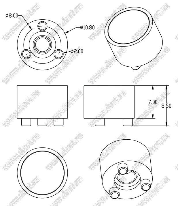 линза для светодиода; D10,8*8,6мм; 30°; PMMA