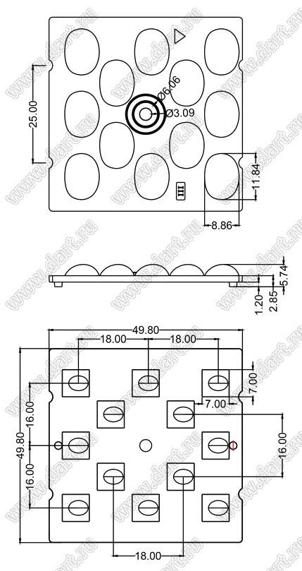 линза для светодиода; 50*50мм; TYPE3-M; PC