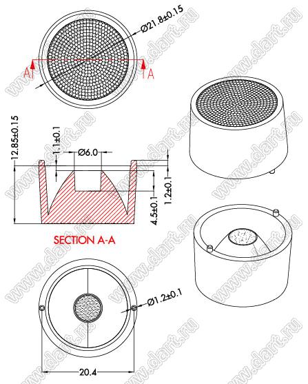 линза для светодиода; D21,8*12,85мм; 30°; PC