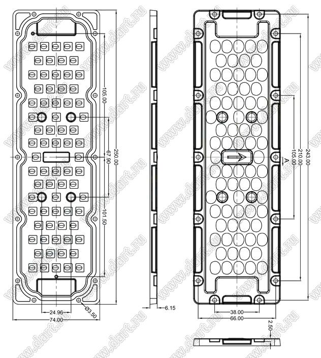 Размеры: 250,0*74,0*6,15 мм