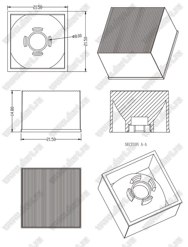 линза для светодиода; 21,5*21,5*14,8мм; 8*60°; PMMA