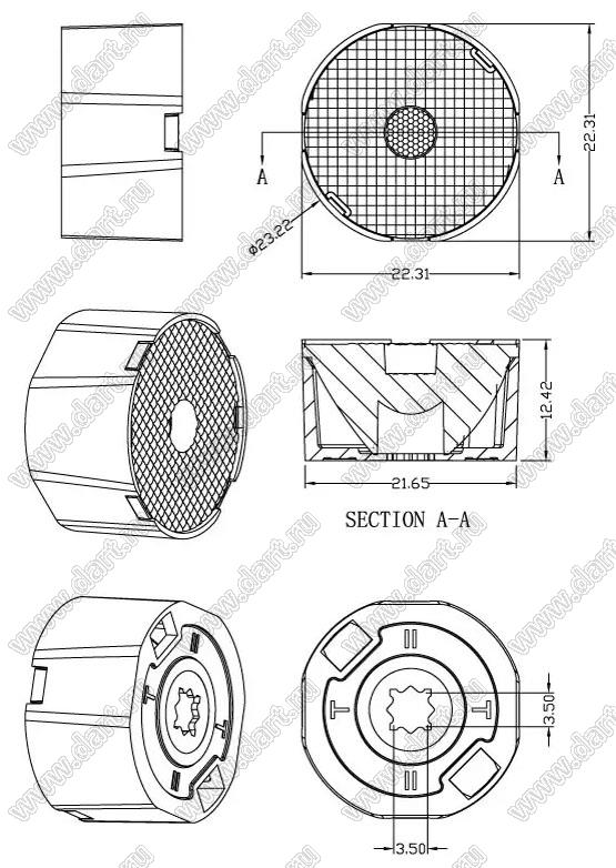 линза для светодиода; D23,22*22,31мм; 10*20°; PMMA