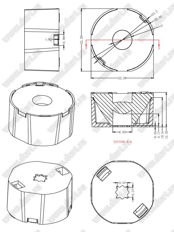 ILENS562-S23-M06-H-133M2 линза для светодиода; D23,22*22,31мм; 06°; PMMA   ILENS562-S23-M06-H-133M2