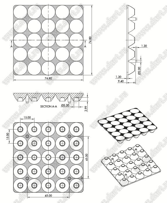 Размеры: 74,8*74,8*9,4 мм