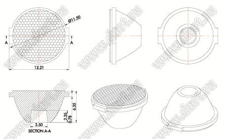 линза для светодиода; D12,8*7,5/8,4мм; 45°; PMMA