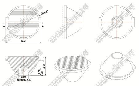 линза для светодиода; D12,80*7,5/8,4мм; 15*45°; PMMA