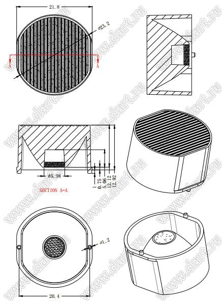 линза для светодиода; D23,2*13,92мм; 15*60°; PC