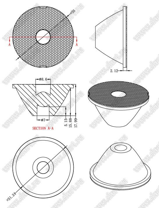 Каталог > Оптоэлектроника и индикация > Линзы и рефлекторы для светодиодов > Прочее > ILENS763-S35-B15-H