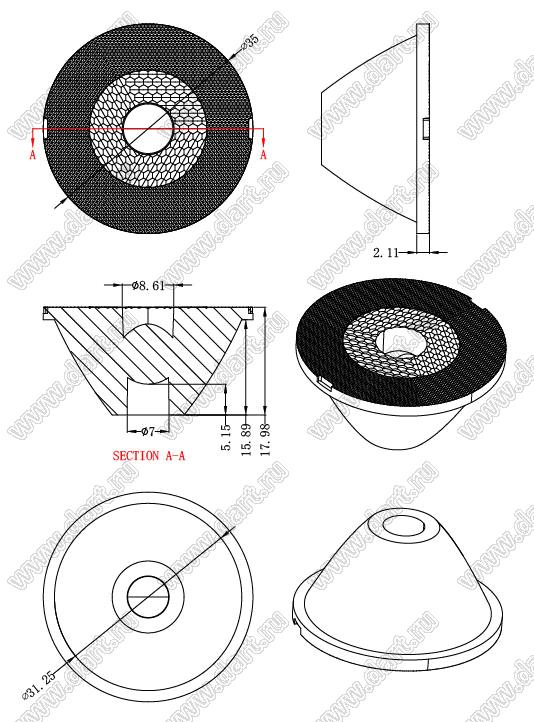 Каталог > Оптоэлектроника и индикация > Линзы и рефлекторы для светодиодов > Прочее > ILENS763-S35-M8-H