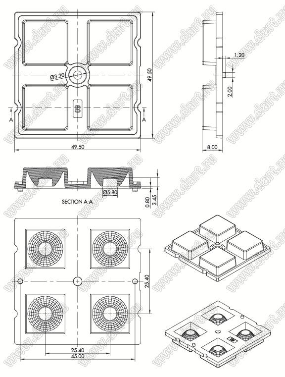 линза для светодиода; 49,5*9,5*8,0мм; 60°; PMMA