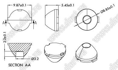 линза для светодиода; D8,85*5,45/D10,02*6,5мм; 15°; PC