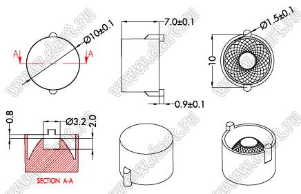 линза для светодиода; D10*7мм; 30°; PC