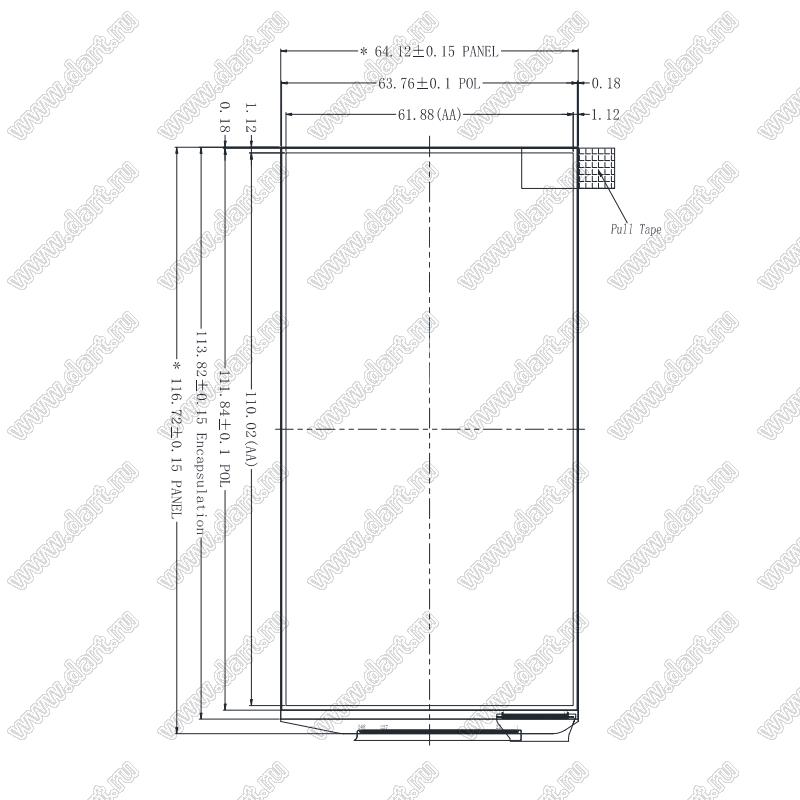 Дисплей AMOLED 5,0-дюймовый с разрешением 720x1280 пикселей на ячейке и интерфейсом HDMI; 5,0дюйм; Количество цветов 16,7M; габариты 64,12x116,72x11,64мм