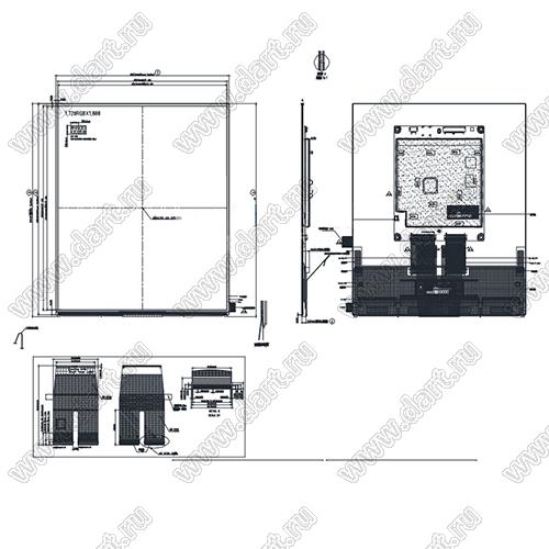 Дисплей AMOLED 12,8-дюймовый с разрешением 1728x1888 микросхем драйвера HX8160-G01 с интерфейсом LVDS; 12,8дюйм; Количество цветов RGB 8 bit; габариты 224,76x248,02x5,80мм