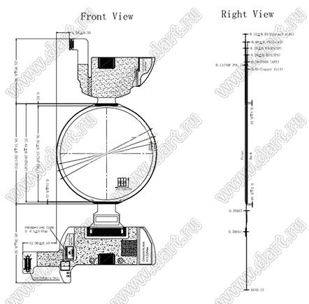 KD014WXOMN008-C002A дисплей AMOLED круглый с интерфейсом MIPI с разрешением 1,4 дюйма, 454x454 пикселей, SH8601Z0; 1,4дюйм; Количество цветов 16,7M; габариты 38,41x38,51x0,88мм