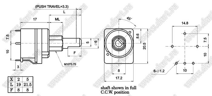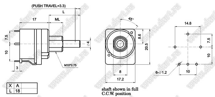 Каталог > Электронные компоненты, радиодетали > Резисторы > Резисторы переменные (потенциометры) > Роторные > 16 мм > R16P2S-AD1-B504 (без вывода)