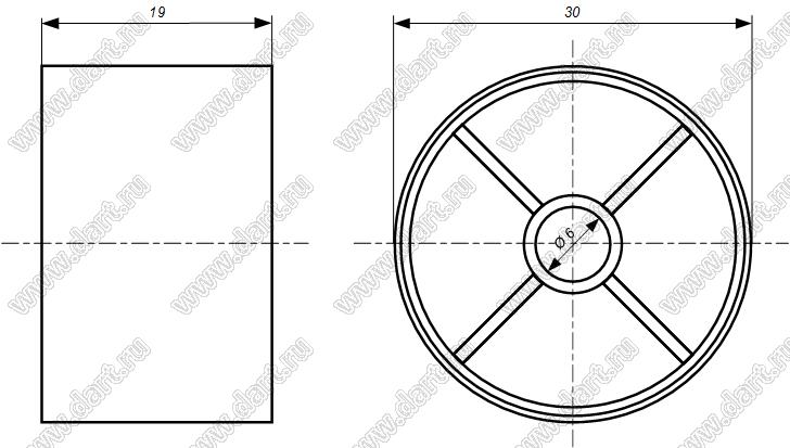 Каталог > Фурнитура для электронных устройств > Ручки приборные регулировочные > Ручки настройки > Ручки регулировочные металлические > B151 серия > B151-30-19-6-O-B2 (IA 30x19)