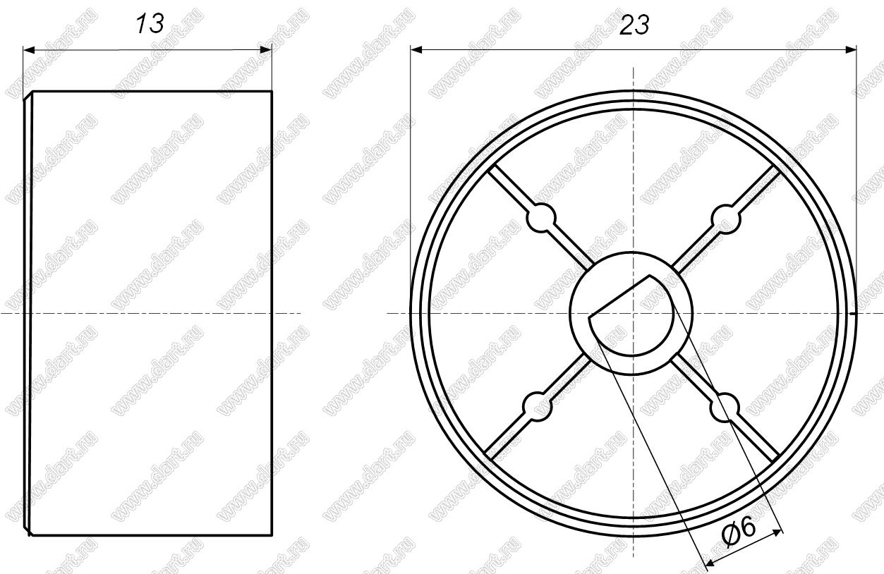 Каталог > Фурнитура для электронных устройств > Ручки приборные регулировочные > Ручки настройки > Ручки регулировочные металлические > B328 серия > B328-23-13-6-D-Sr (IBD 23x13)