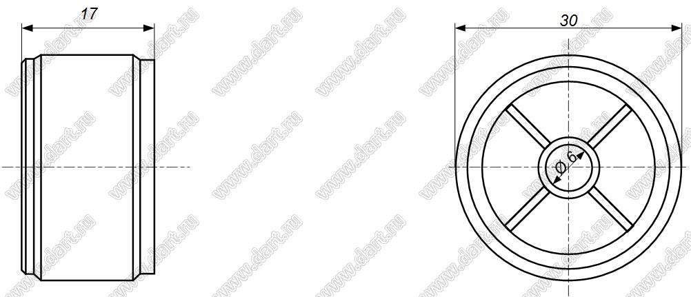Каталог > Фурнитура для электронных устройств > Ручки приборные регулировочные > Ручки настройки > Ручки регулировочные металлические > B140 серия > B140-30-17-6-B-CR2 (VE 30x17)