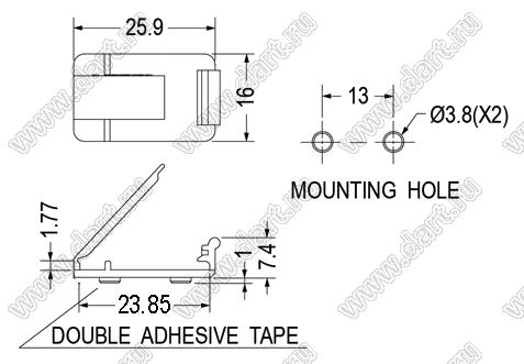 Каталог > Фурнитура для электронных устройств > Крепеж проводов и кабелей > Зажимы для плоского кабеля > с фиксацией в панель на защелке > MIBB серия > MIBB-7