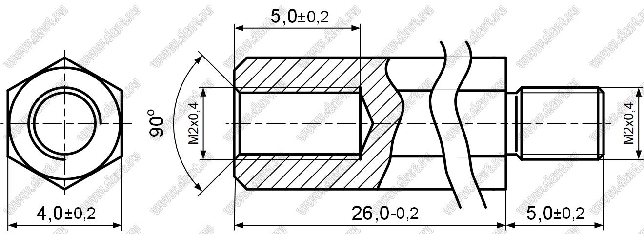 Каталог > Фурнитура для электронных устройств > Крепеж металлический (метизы) и пластиковый > Стойки резьбовые > Стойки резьбовые металлические > PCHSN серия > PCHSN2.0-xx (SW=4.0) серия > PCHSN2-26N (4.0)