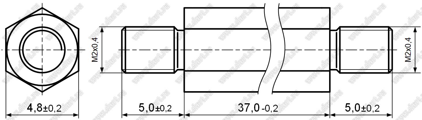 Каталог > Фурнитура для электронных устройств > Крепеж металлический (метизы) и пластиковый > Стойки резьбовые > Стойки резьбовые металлические > PCHNN серия > PCHNN2.0-xx (SW=4.8) серия > PCHNN2-37 (4.8)