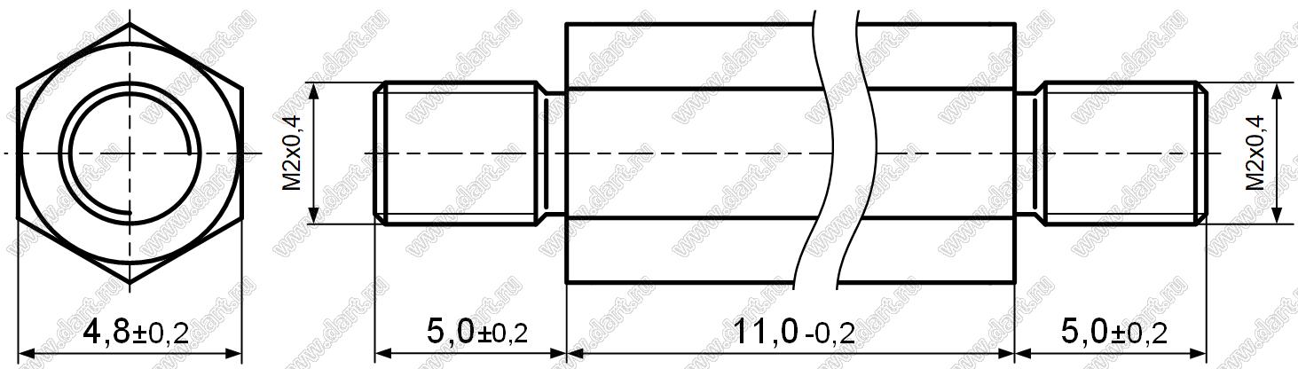 Каталог > Фурнитура для электронных устройств > Крепеж металлический (метизы) и пластиковый > Стойки резьбовые > Стойки резьбовые металлические > PCHNN серия > PCHNN2.0-xx (SW=4.8) серия > PCHNN2-11N (4.8)