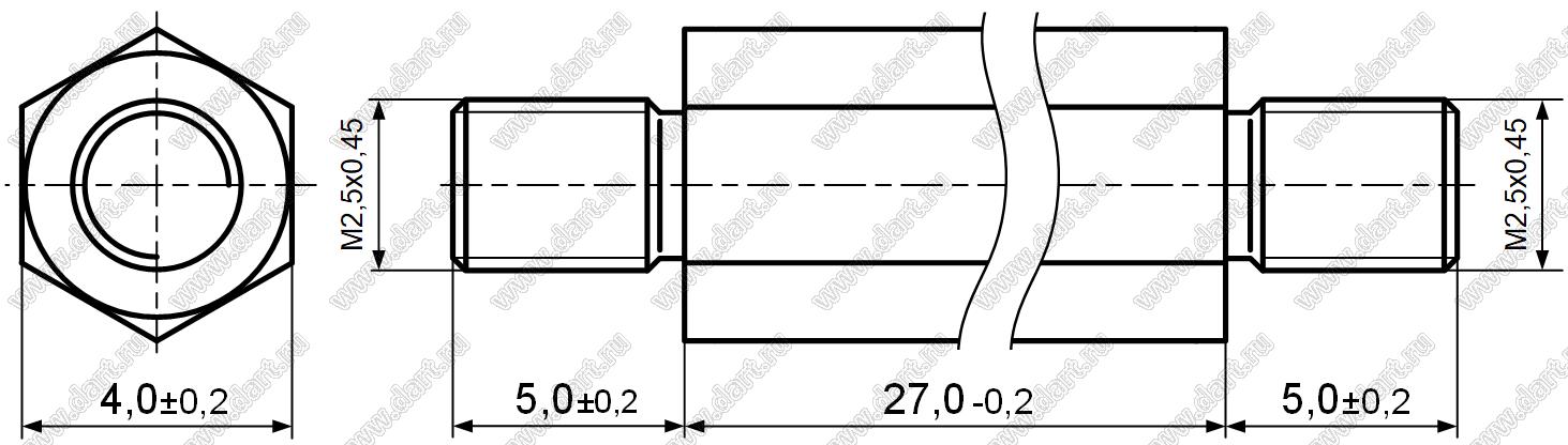 Каталог > Фурнитура для электронных устройств > Крепеж металлический (метизы) и пластиковый > Стойки резьбовые > Стойки резьбовые металлические > PCHNN серия > PCHNN2.5-xx (SW=4.0) серия > PCHNN2.5-27N (4.0)