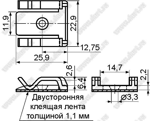 Каталог > Фурнитура для электронных устройств > Крепеж проводов и кабелей > Зажимы для плоского кабеля > с самоклеящейся площадкой и винтами > FCP серия > FCP-25(3M)
