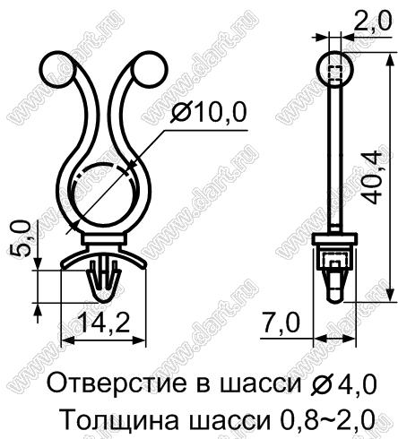 Каталог > Фурнитура для электронных устройств > Крепеж проводов и кабелей > Зажимы проводов с фиксацией в панель на защелках > Прочее > THI-4