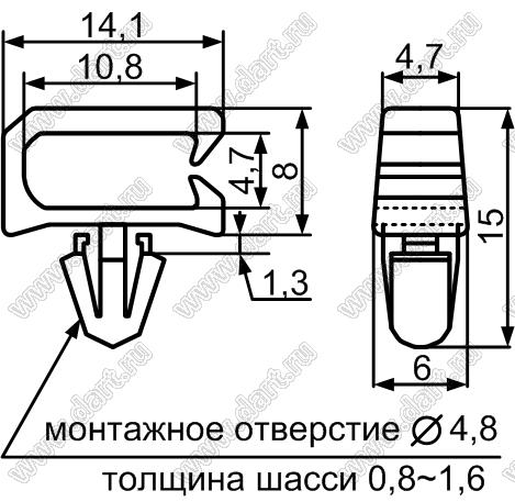 Каталог > Фурнитура для электронных устройств > Крепеж проводов и кабелей > Зажимы проводов с фиксацией в панель на защелках > MIS серия > MIS-3