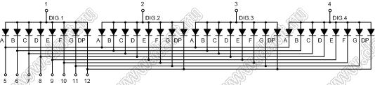 Каталог > Оптоэлектроника и индикация > Индикаторы светодиодные (сегментные дисплеи, матрицы, шкалы, светящиеся поля) > Цифровые и цифро-буквенные cветодиодные сегментные индикаторы (дисплеи) > 4-разрядные сегментные индикаторы > 4-разр. 0.39 дюйм. 7-сегм. 3491 серия > BJ3491FW