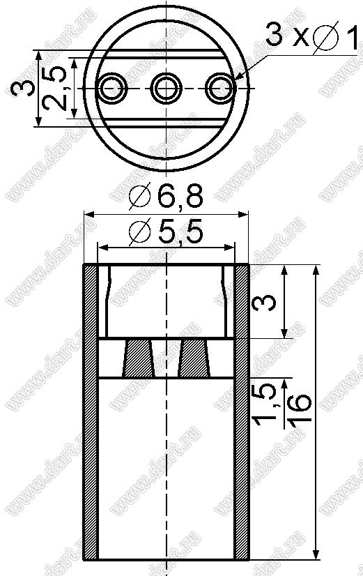 LEH3-16 прямой держатель круглого 5мм 3-х выводного светодиода на плату   LEH3-16