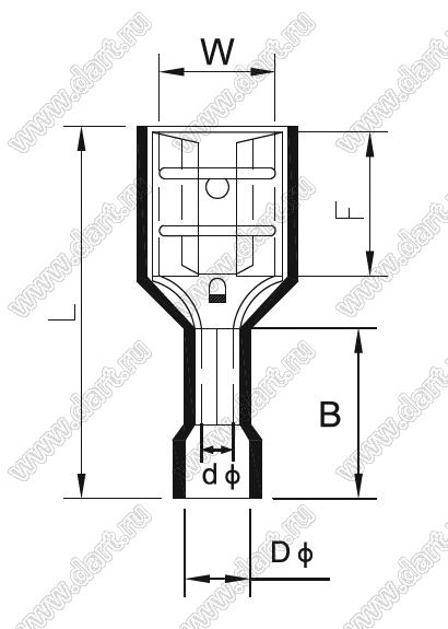 Каталог > Фурнитура для электронных устройств > Наконечники кабельные и клеммы FASTON россыпью в пакетах > Наконечники кабельные изолированные россыпью в пакетах > FDFN серия: наконечники кабельные полностью изолированные ножевые гнезда > FDFN5.5-250-T/R