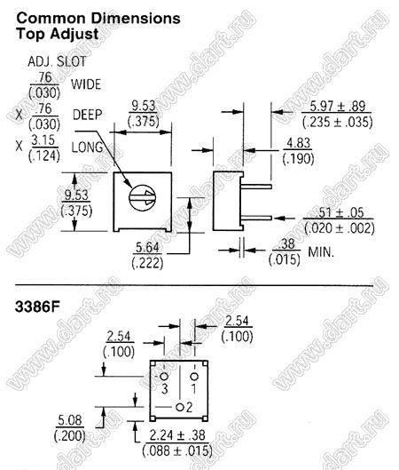 Каталог > Электронные компоненты, радиодетали > Резисторы > Резисторы подстроечные > Резисторы подстроечные для выводного монтажа > 3386 серия > 3386F-1-104