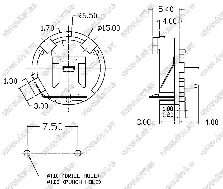 Каталог > Фурнитура для электронных устройств > Держатели аккумуляторов и батареек > Держатели для "таблеточных" элементов питания > Держатели элементов питания типоразмера 1220 > CH23-1220 (BS1220-1, KLS5-CR1220-01)