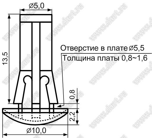 Каталог > Фурнитура для электронных устройств > Фиксаторы плат, стойки межплатные > Фиксаторы под круглое отверстие > Фиксаторы с защелкой в шасси > RAM серия > RAM-13.5
