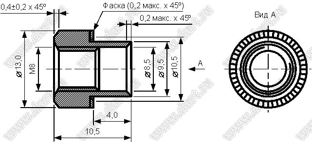 Каталог > Фурнитура для электронных устройств > Крепеж металлический (метизы) и пластиковый > Втулки резьбовые развальцовочные (бонки) > Втулки резьбовые развальцовочные (бонки) M8 > BONR-М8D13H6,6Z (BON0810)